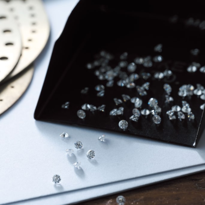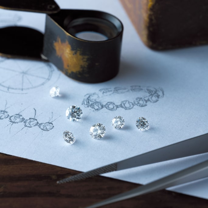「心打つダイヤモンド」を求め続けるカシケイは、原石の素性を見極め、そこに独自のカッティングパラメーターと最新鋭の研磨技術を駆使して、誰が見てもいちばん綺麗なダイヤモンドを完成させました。