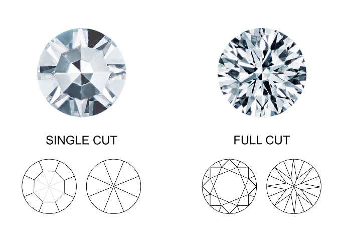 シングルカットとは、58面フルカットよりも面数が少なく(カシケイでは17面)、一つひとつのファセットが大きくなるので輝きがはっきりするオールドカットの一種です。カシケイは、このシングルカットにも新たな輝きを求めました。