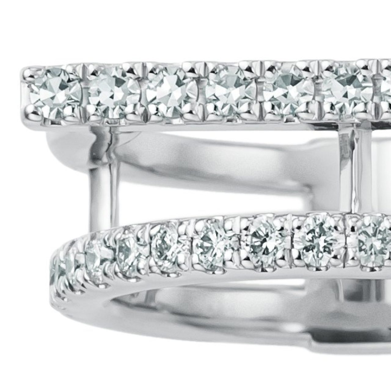 〈デュタン〉シンプルでエッジのきいたデザインは見る人に鮮烈な印象を刻み、個性を主張したい人の心を満たして、その輝きを知的かつ大胆に増幅させます。重ね付けでは輝きの協奏も。シングルカットとラウンドブリリアントカットの二つの輝きが時を超えて調和します。モードを愛する人の静かなる主張に。